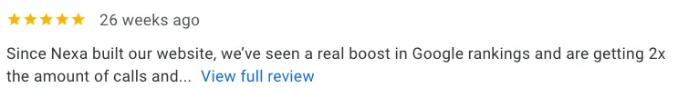 "Since Nexa built our website, we’ve seen a real boost in Google rankings and are getting 2x the amount of calls and inquiries through the site."
